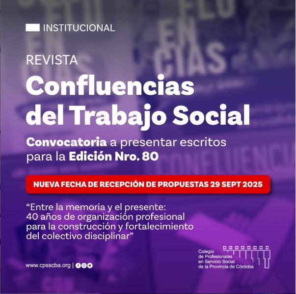 La Revista del CPSSPC “Confluencias del Trabajo Social” se encuentra en plena recepción de escritos para la convocatoria Nro. 80