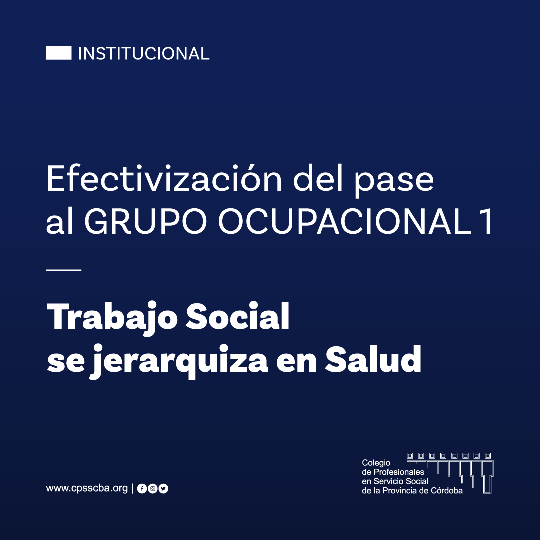 Informamos a todo el colegiado que nuestra profesión/disciplina de Trabajo Social ya es efectivamente parte del grupo ocupacional 1 de la Ley de equipos de salud de la Provincia de Córdoba.