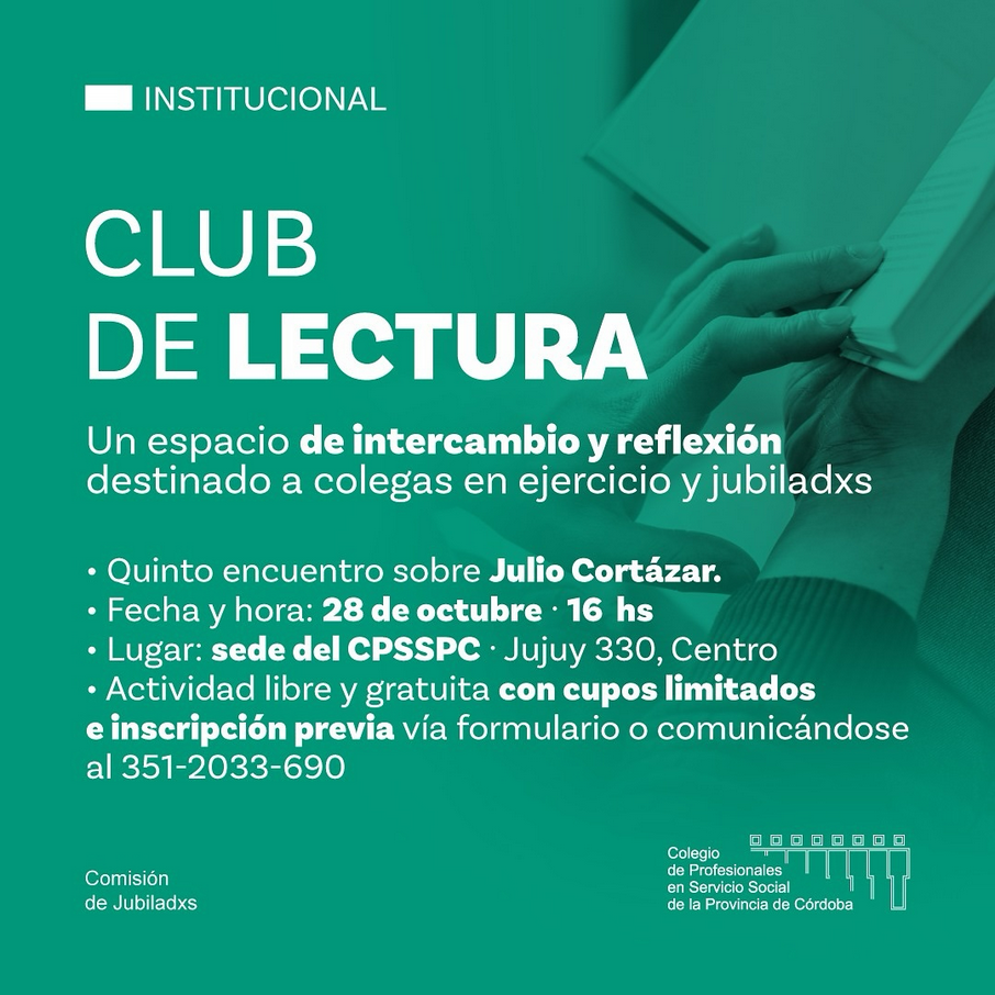 El próximo 28 de octubre a las 16 hs nos reunimos nuevamente en Jujuy 330, sede de nuestro Colegio. Una invitación para quienes disfrutamos de la lectura y de compartirla.