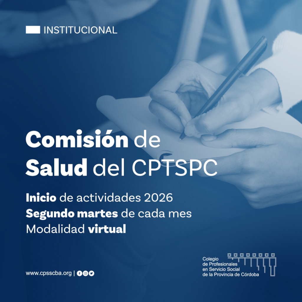 La Comisión de Salud del CPTSPC informa que dará comienzo a las reuniones mensuales del ciclo 2026, los segundos martes de cada mes, en modalidad virtual, a las 20:30 horas.