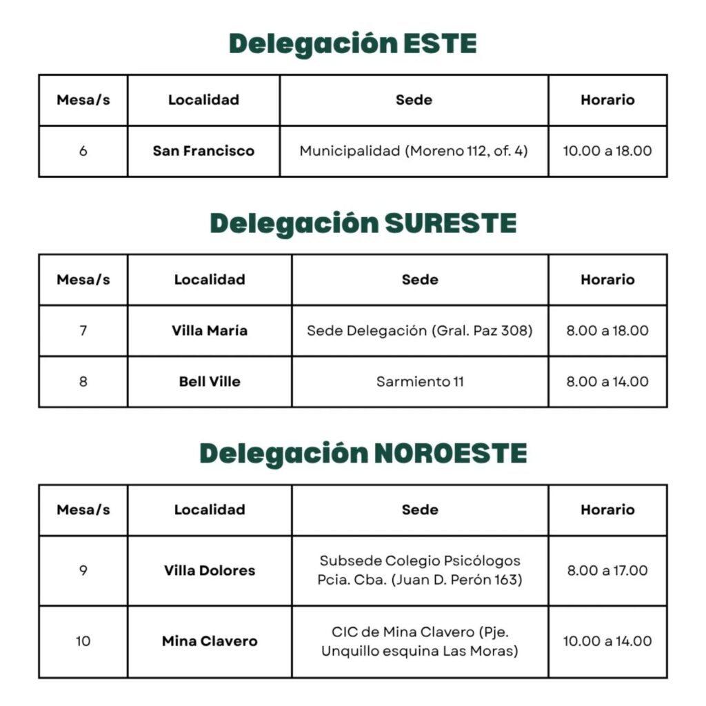 Los horarios varían según la localidad, por lo que se recomienda a las/os matriculadas/os consultar el Anexo I detallado para verificar el horario específico de su mesa.
