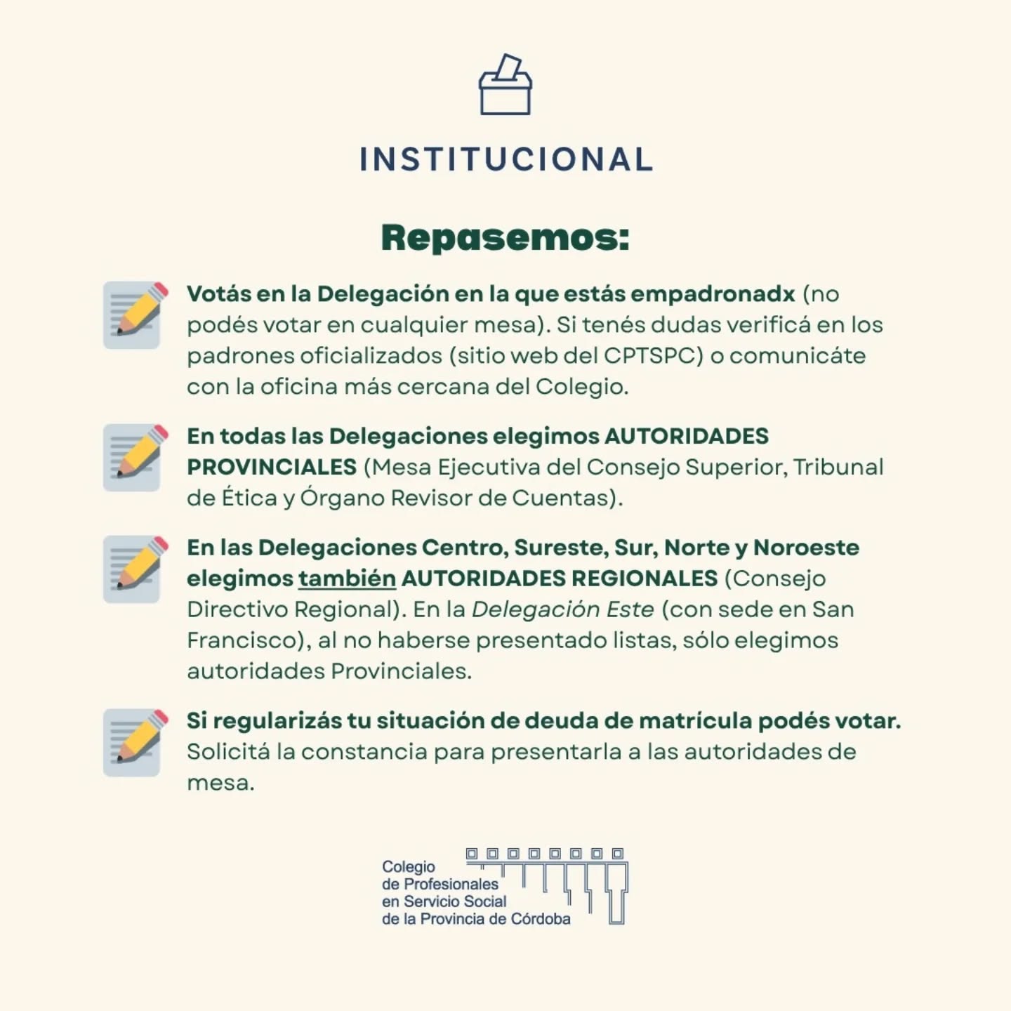 Córdoba, 13 de abril de 2026. En una nueva sesión de la Junta Electoral Provincial del Colegio de Profesionales en Trabajo Social de la Provincia de Córdoba (CPTSPC), se avanzó en la organización logística y administrativa del acto electoral. Con el objetivo de garantizar la transparencia y la participación democrática en toda la geografía provincial, se aprobaron las designaciones de las autoridades de mesa y los responsables del traslado de urnas.