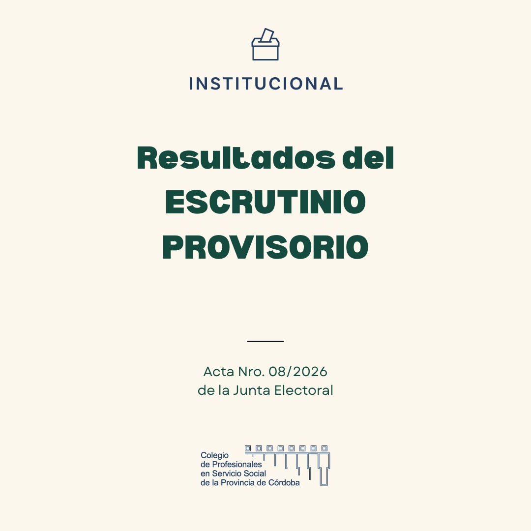Córdoba, 17 de abril de 2026. Al cierre de la jornada electoral, la Junta Electoral Provincial del Colegio de Profesionales en Trabajo Social de la Provincia de Córdoba (CPTSPC) emitió el Acta N° 08/2026, detallando los resultados del escrutinio provisorio. Con un total de 375 votantes registrados en las actas digitalizadas, el proceso electoral se desarrolló con normalidad en las 15 mesas distribuidas en el territorio provincial.