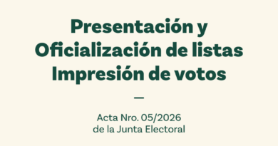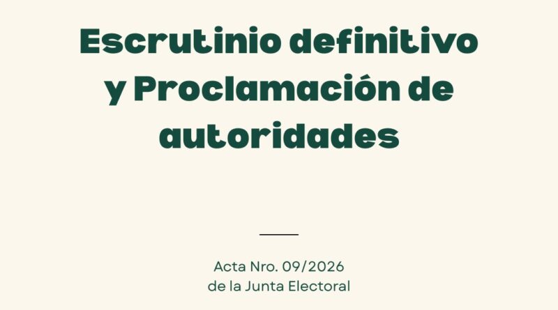 Acceso a la información: La nómina completa de las autoridades proclamadas y el detalle de votos por mesa pueden consultarse en el Acta N° 09/2026, disponible aqui.