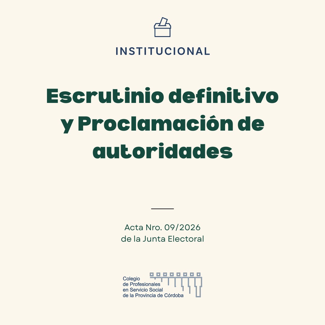 La Junta Electoral Provincial dio por finalizado el escrutinio definitivo, ratificando los resultados de la jornada democrática. Con la firma del Acta N° 09/2026, quedaron oficialmente proclamadas las autoridades que conducirán los destinos del Colegio de Profesionales en Trabajo Social durante los próximos tres años.